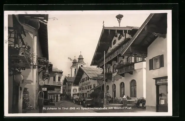 AK St. Johann, Speckbacherstrasse mit Gasthof Post