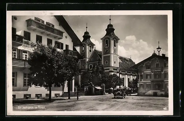 AK St. Johann, Strassenpartie mit Gasthof und Kirche