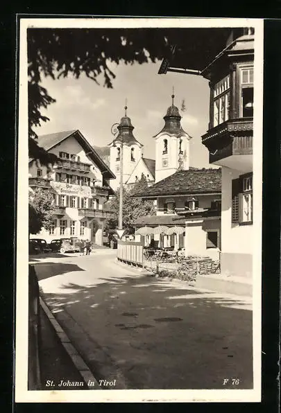 AK St. Johann, Strassenpartie mit Post und Telegraphenamt