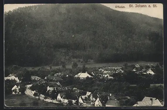 AK St. Johann am Steinfelde, Totalansicht aus der Vogelschau
