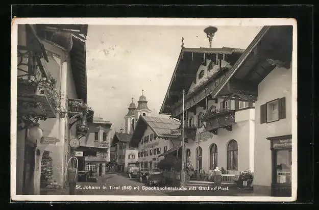 AK St. Johann i. T., Speckbacherstrasse mit Gasthof Post