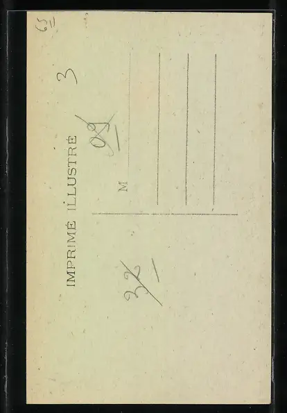 Personenbezogene Daten auf der Rückseite der Karte wurden durch blauen Textmarker unkenntlich gemacht. Die blauen Stellen sind auf die Vorderseite durchgeweicht und wirken sich negativ auf das Postkartenfoto aus