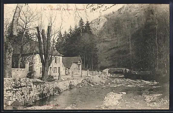 AK St-Lary, Vue de la rivière et des maisons en bordure de forêt