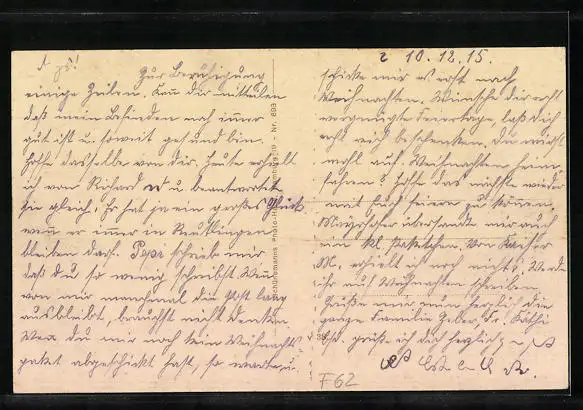 Personenbezogene Daten auf der Rückseite der Karte wurden durch blauen Textmarker unkenntlich gemacht. Die blauen Stellen sind auf die Vorderseite durchgeweicht und wirken sich negativ auf das Postkartenfoto aus
