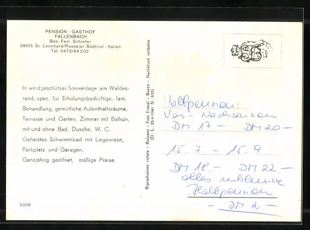 AK St. Leonhard /Passeier, Pension-Gasthof Fallenbach