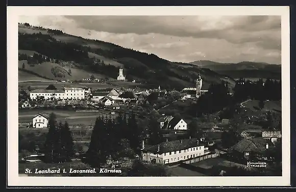 AK St. Leonhard i. Lavanttal, Ortspartie mit Kirche