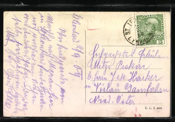 alte Ansichtskarte, gelaufen 1909, Eckknick re. oben, guter Zustand