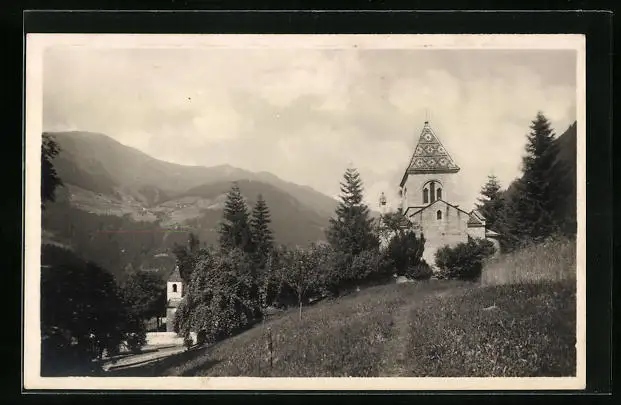 AK St. Leonhard in Passeier, Partie an der Kirche