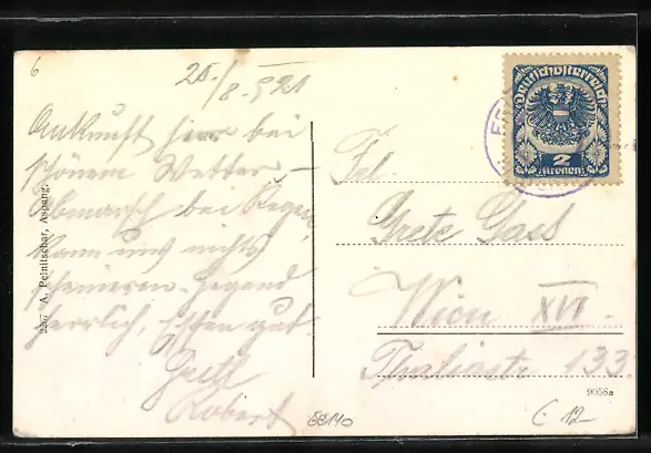 alte Ansichtskarte, gelaufen 1921, Eckknick li. oben, guter Zustand