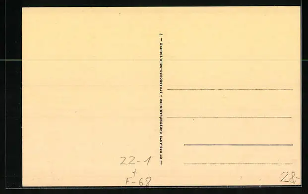 Personenbezogene Daten auf der Rückseite der Karte wurden durch blauen Textmarker unkenntlich gemacht. Die blauen Stellen sind auf die Vorderseite durchgeweicht und wirken sich negativ auf das Postkartenfoto aus