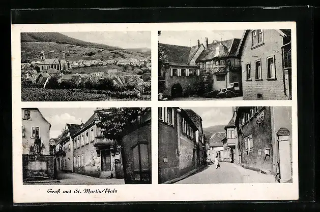 AK St. Martin /Pfalz, Strassenpartie, Ortsansicht mit Kirche