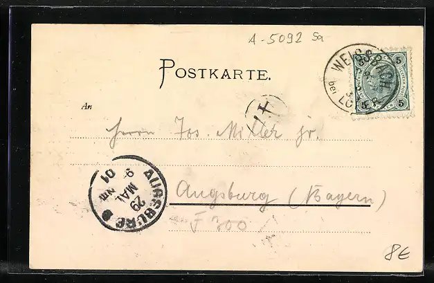 alte Ansichtskarte, gelaufen 1901, Stempelspur, guter Zustand