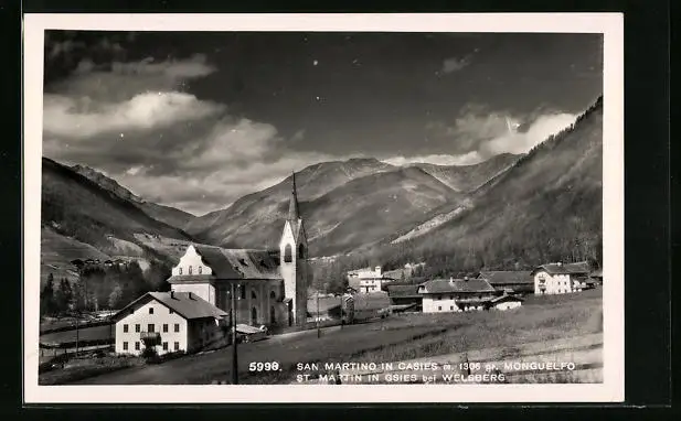 AK St. Martin in Gsies bei Welsberg, Teilansicht mit Kirche