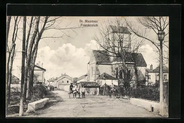 AK St. Masmes, Strassenpartie mit Kirche, Eglise