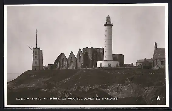 AK St-Mathieu /Finistère, Le Phare, Ruines de l`Abbaye