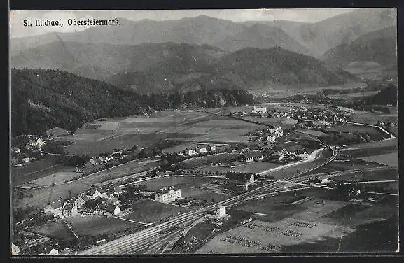 AK St. Michael /Obersteiermark, Fliegeraufnahme des Ortes