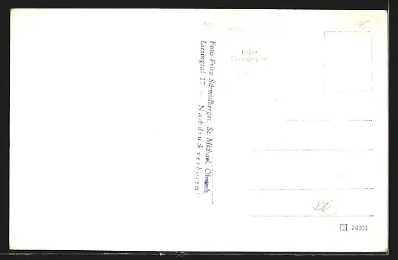 Personenbezogene Daten auf der Rückseite der Karte wurden durch blauen Textmarker unkenntlich gemacht. Die blauen Stellen sind auf die Vorderseite durchgeweicht und wirken sich negativ auf das Postkartenfoto aus