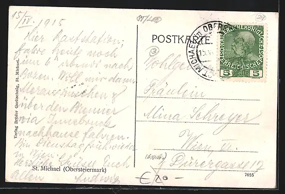 alte Ansichtskarte, gelaufen 1915, Stempelspur, guter Zustand