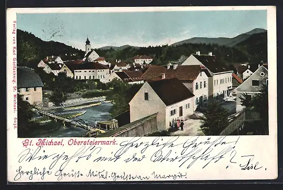 AK St. Michael /Obersteiermark, Teilansicht mit Kirche