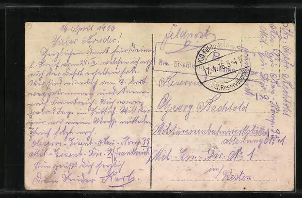 alte Ansichtskarte, gelaufen 1916 als Feldpost, guter Zustand