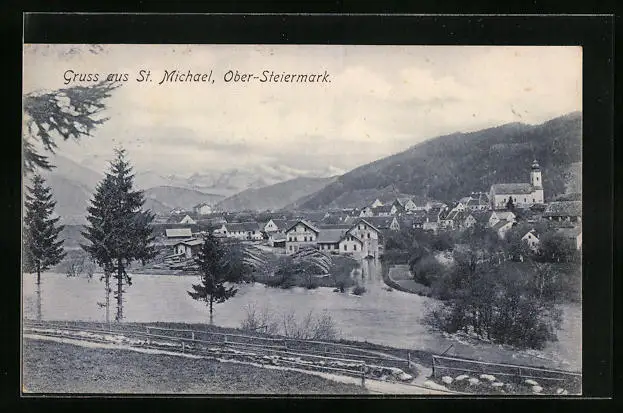 AK St. Michael, Ortsansicht mit Holzstoff-Fabrik
