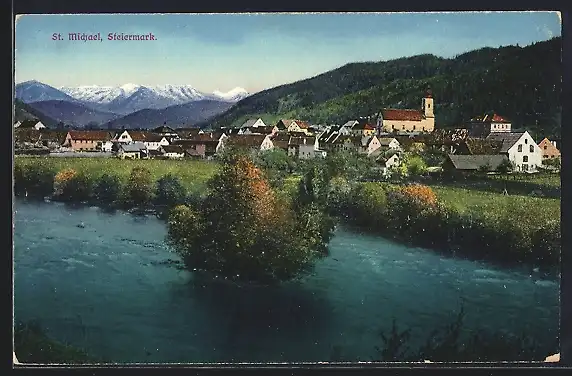 AK St. Michael /Steiermark, Ortsansicht mit Kirche
