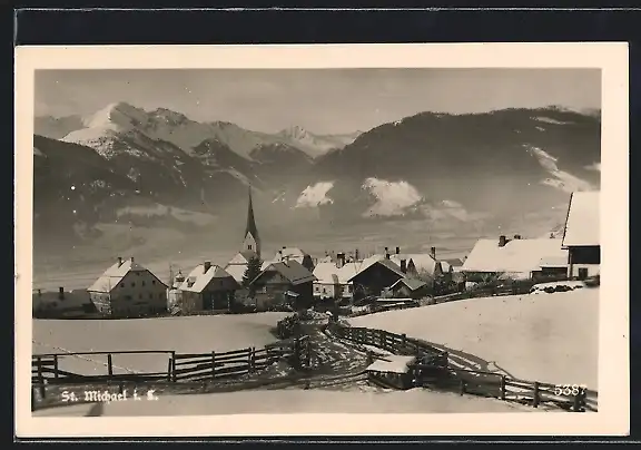 AK St. Michael i. L., Teilansicht mit Kirche im Schnee