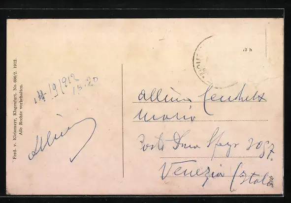 alte Ansichtskarte, gelaufen, Briefmarke entfernt, rückseitig Oberflächenschaden, guter Zustand