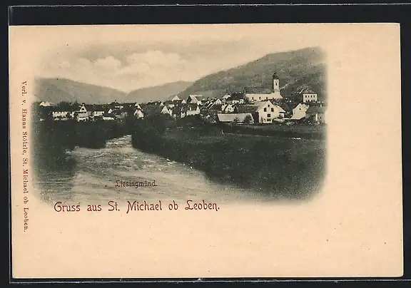 AK St. Michael ob Leoben, Ortsansicht mit Flusspartie