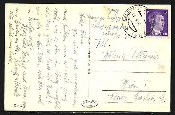 alte Ansichtskarte, gelaufen 1942, guter Zustand