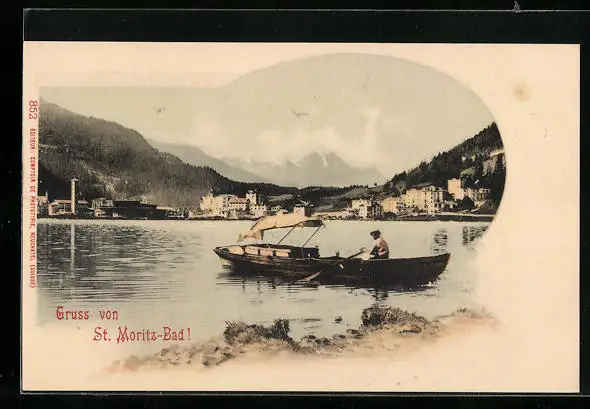 AK St. Moritz-Bad, Uferpartie mit Boot