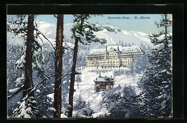 AK St. Moritz, Blick auf Winteridylle mit Suvretta-Haus