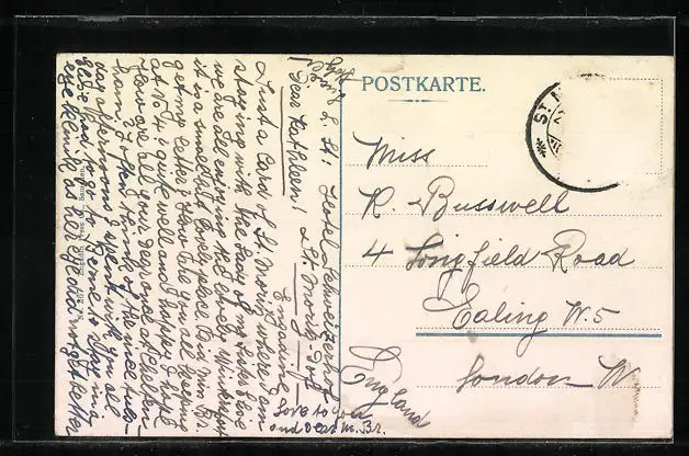 alte Ansichtskarte, gelaufen, Briefmarke entfernt, rückseitig Oberflächenschaden, guter Zustand