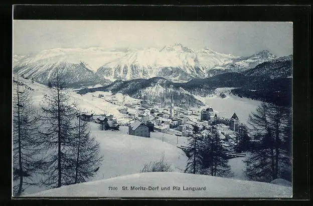 AK St. Moritz, Blick auf den Ort und Piz Languard