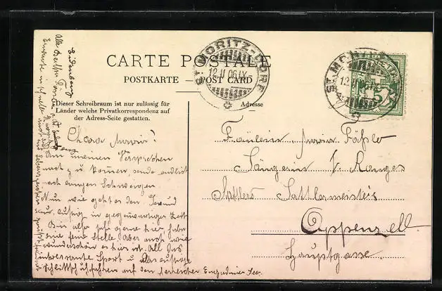 alte Ansichtskarte, gelaufen 1906, guter Zustand