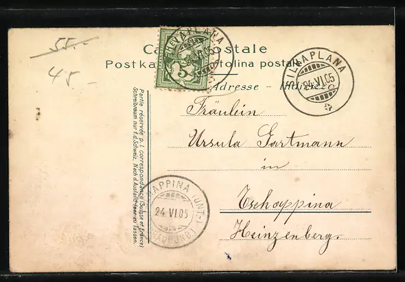 gelaufen 1905, Ecken und Kante re. bestoßen, guter Zustand