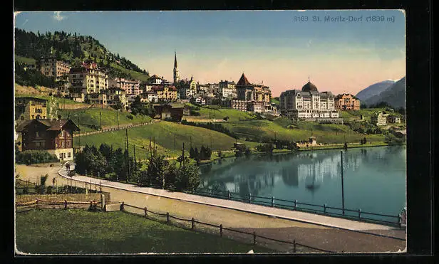 AK St. Moritz-Dorf, Ortsansicht mit See