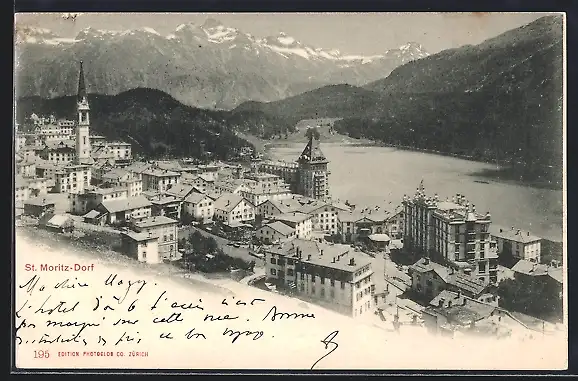 AK St. Moritz-Dorf, Teilansicht mit Hotel