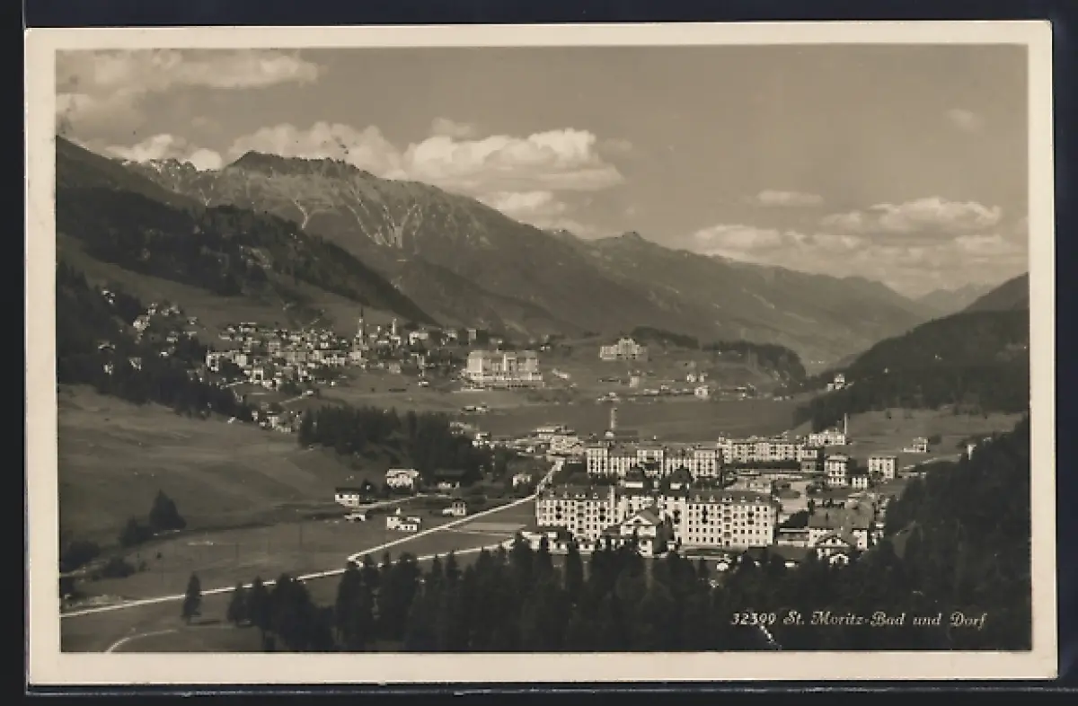 AK St. Moritz, Dorfansicht mit Hotel