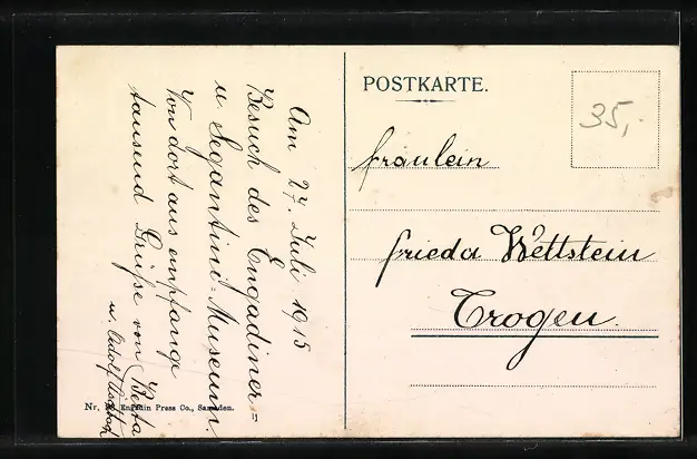 ungelaufen, Rückseite beschrieben 1915, leicht fleckig, guter Zustand