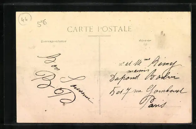 Personenbezogene Daten auf der Rückseite der Karte wurden durch blauen Textmarker unkenntlich gemacht. Die blauen Stellen sind auf die Vorderseite durchgeweicht und wirken sich negativ auf das Postkartenfoto aus