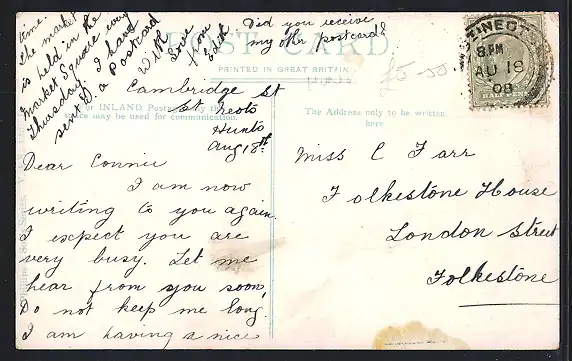 alte Ansichtskarte, gelaufen 1908, guter Zustand