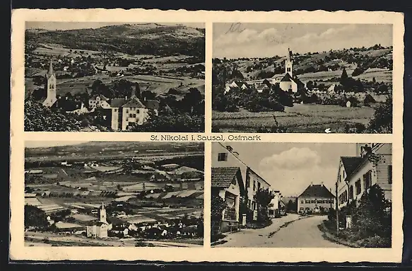 AK St. Nikolai im Sausal, Ortsansicht, Kirche, Strassenpartie