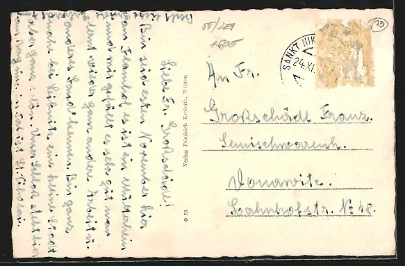 alte Ansichtskarte, gelaufen, Briefmarke entfernt, guter Zustand