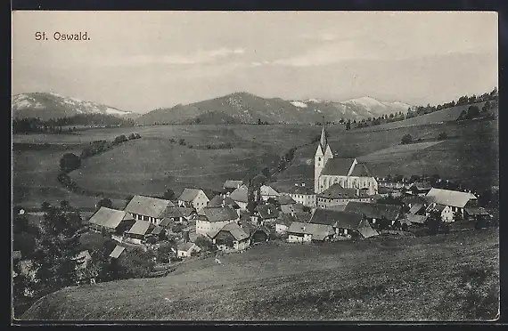 AK St. Oswald-Möderbrugg, Ortsansicht mit Kirche