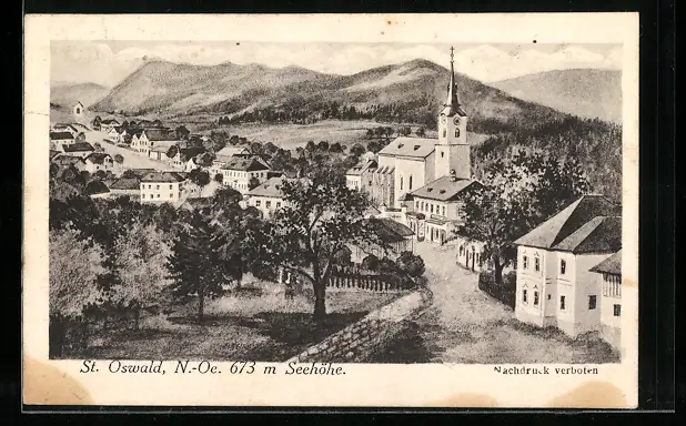 AK St. Oswald /N. Oe., Ortsansicht mit Kirche