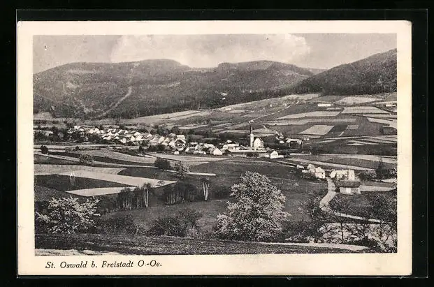 AK St. Oswald b. Freistadt, Teilansicht mit Kirche