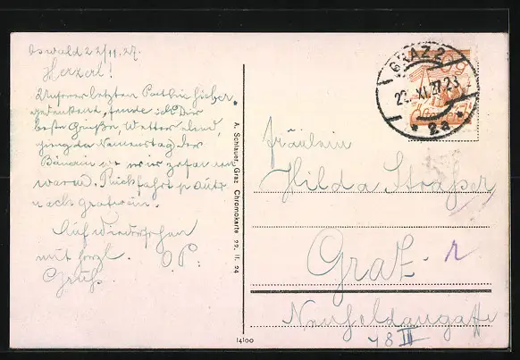 alte Ansichtskarte, gelaufen 1927, Stempelspur, guter Zustand