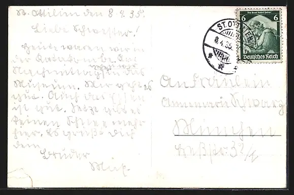 alte Ansichtskarte, gelaufen 1935, Einriss u. Bugspur unten re., guter Zustand