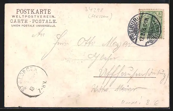 alte Ansichtskarte, gelaufen 1905, Eckknick re. oben, guter Zustand